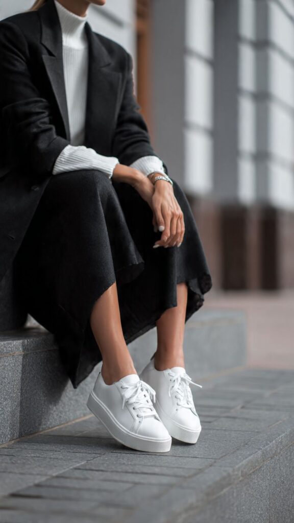 Clean white leather sneakers elevate casual looks. Choose quality sneakers that look intentional, not athletic. They should be pristineโscuffed white sneakers ruin the effect.