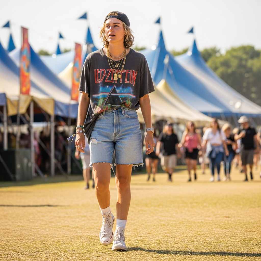 Some combinations are timeless for good reason. The vintage band tee or retro graphic shirt paired with perfectly worn denim shorts captures that carefree summer spirit. This isn’t trying too hard it’s authentically casual with a nod to personal style through your tee choice.