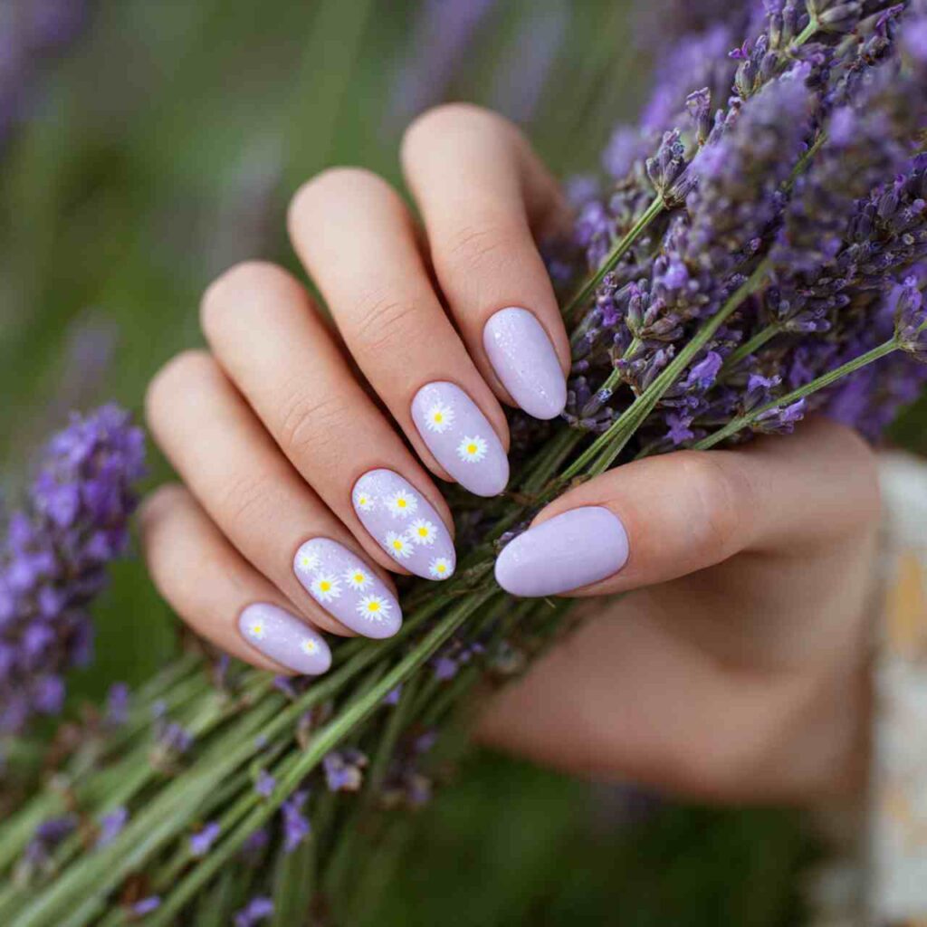 Dreamy lavender base adorned with delicate hand-painted white daisies creates whimsical spring charm. The floral details add feminine sweetness while the soft purple provides calming sophistication.
