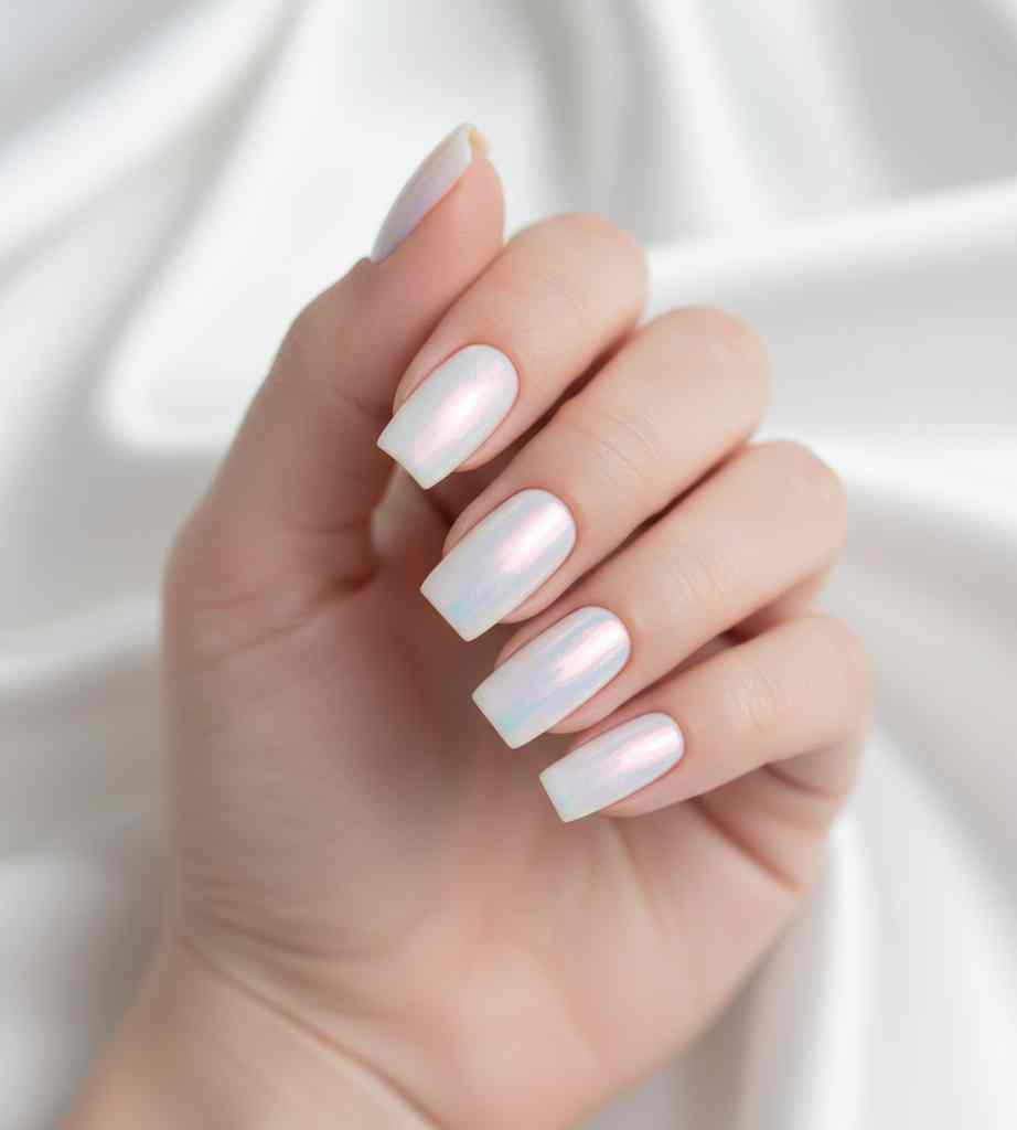 Pure white with an iridescent pearl finish creates an ethereal, snow-queen effect that’s perfect for winter weddings or special occasions.