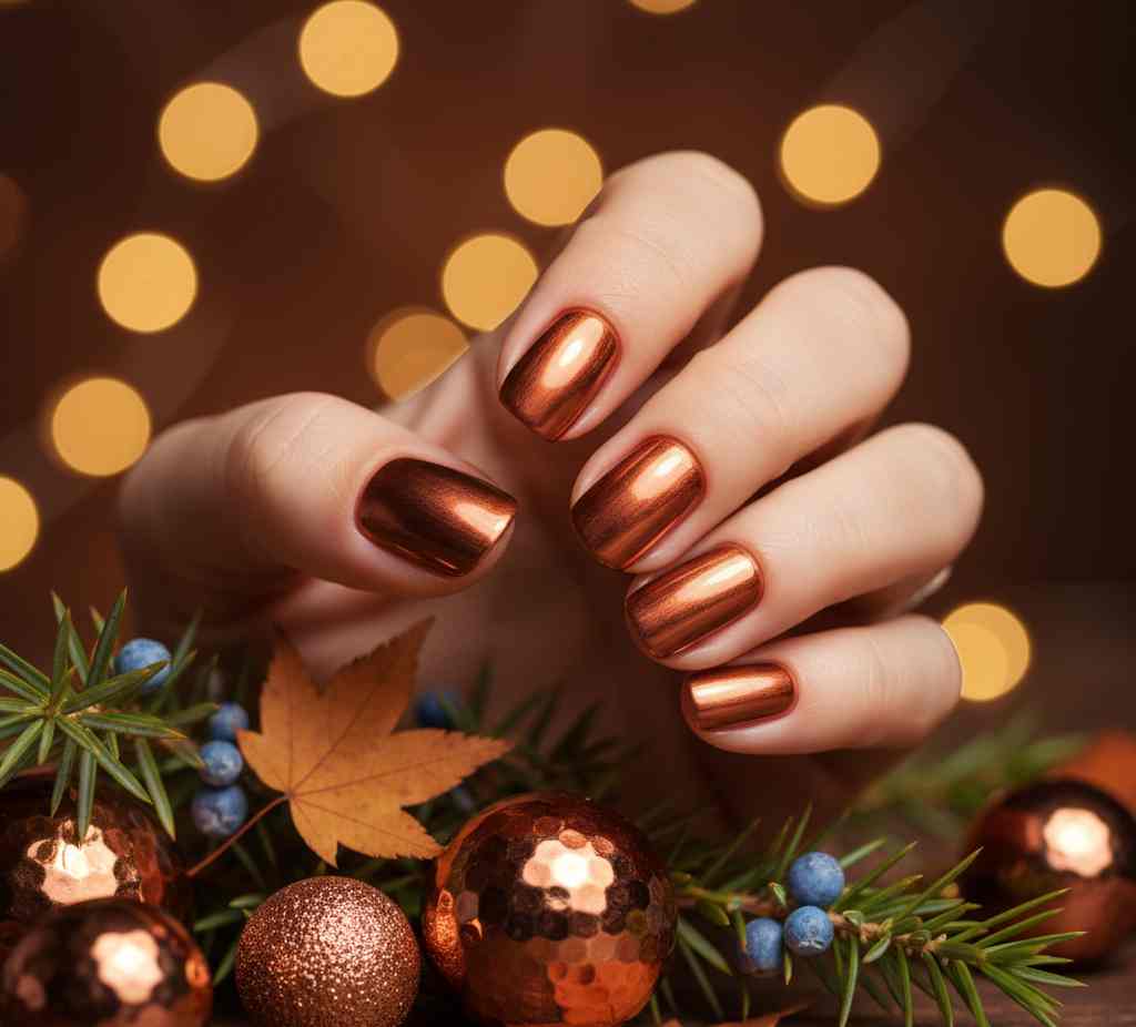 Warm copper brings a metallic glow that resembles cozy firelight, making it perfect for the winter season.