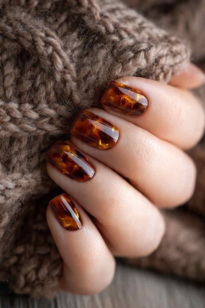 Embrace the cozy cabin aesthetic with a tortoiseshell pattern in browns, ambers, and golds that looks sophisticated and unique.