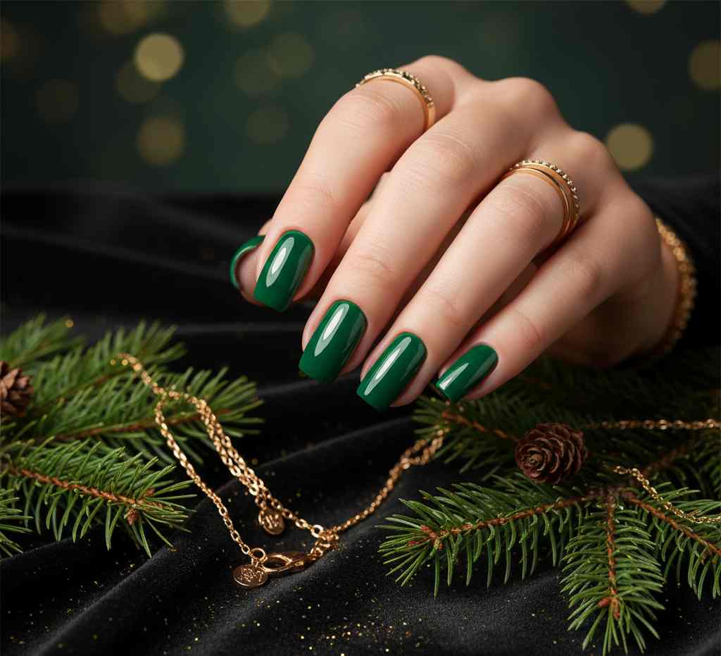 Emerald green brings a jewel-toned richness perfect for the holiday season. This sophisticated shade makes a bold statement while remaining elegant on shorter nails.