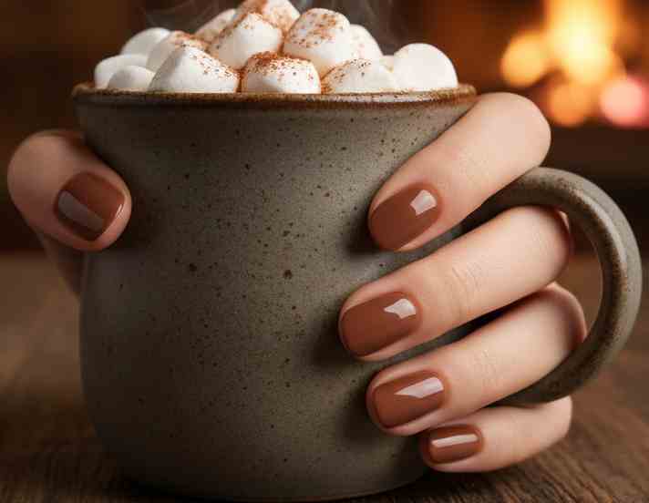 Embrace the cozy side of winter with a creamy chocolate brown that feels as comforting as your favorite hot cocoa. This earthy tone is incredibly wearable for everyday winter activities.