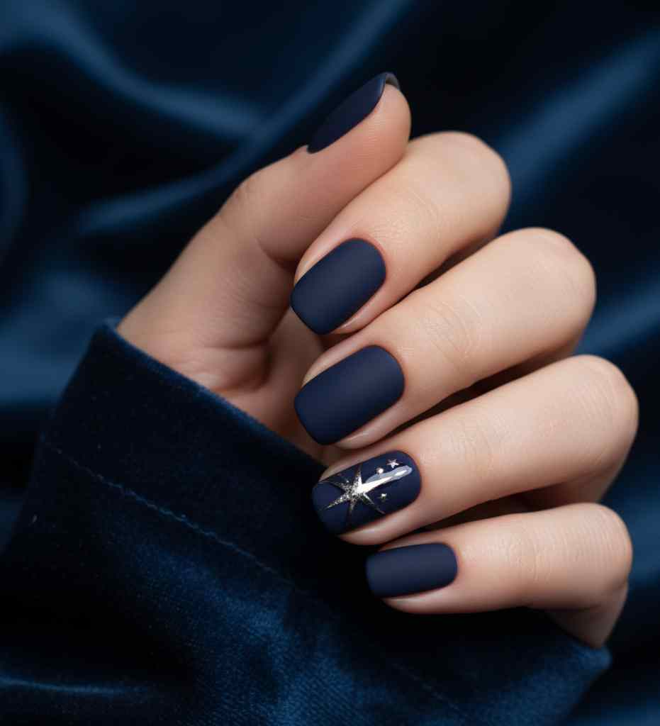 Deep navy blue creates a night-sky effect, especially when topped with tiny silver star accents that twinkle like winter constellations.