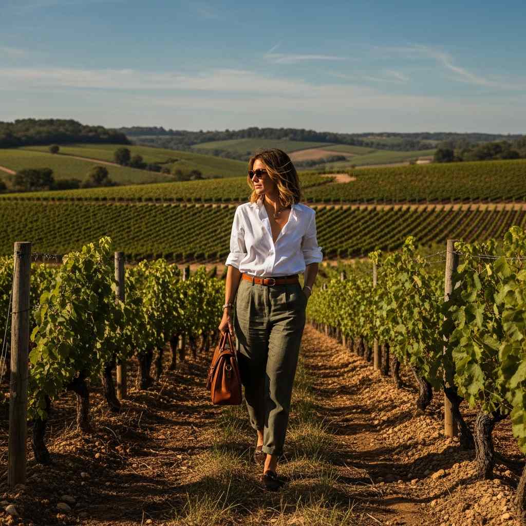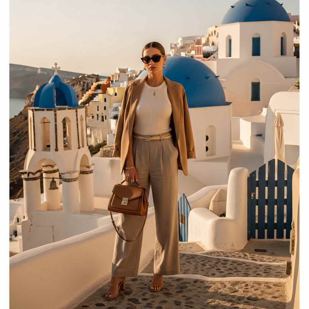 Choose wide-leg or straight-leg linen trousers in shades like stone, sand, or light grey. The high waist creates flattering proportions while the breathable fabric allows air circulation. Pair with a simple ribbed or silk tank top tucked in to define your waist. Add woven leather sandals and a structured leather bag. This outfit transitions effortlessly from museum visits to harbor-side lunches, embodying that coveted European ease.