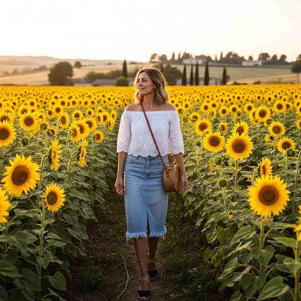 Select a white eyelet topโoff-shoulder, puff sleeve, or classic cut all workโwith delicate openwork detail. Pair with a denim midi or mini skirt in light to medium wash. The combination of crisp white and casual denim creates appealing contrast. Add flat sandals or espadrilles and simple jewelry. This outfit works for seaside towns, countryside exploration, outdoor lunches, or any vacation setting with romantic appeal.