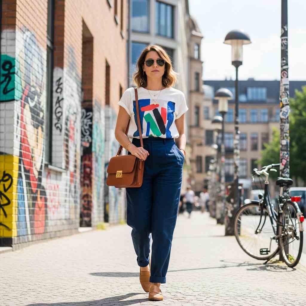 Select a graphic tee in quality cotton with a tasteful designโvintage band logos, artistic prints, or subtle text work well. Pair with tailored trousers, a linen skirt, or high-quality denim. Tuck the front in loosely and add elevated accessoriesโleather sandals, a structured bag, and quality sunglasses. This outfit works for casual sightseeing, lunch spots, shopping districts, or daytime activities where you want comfort with style.