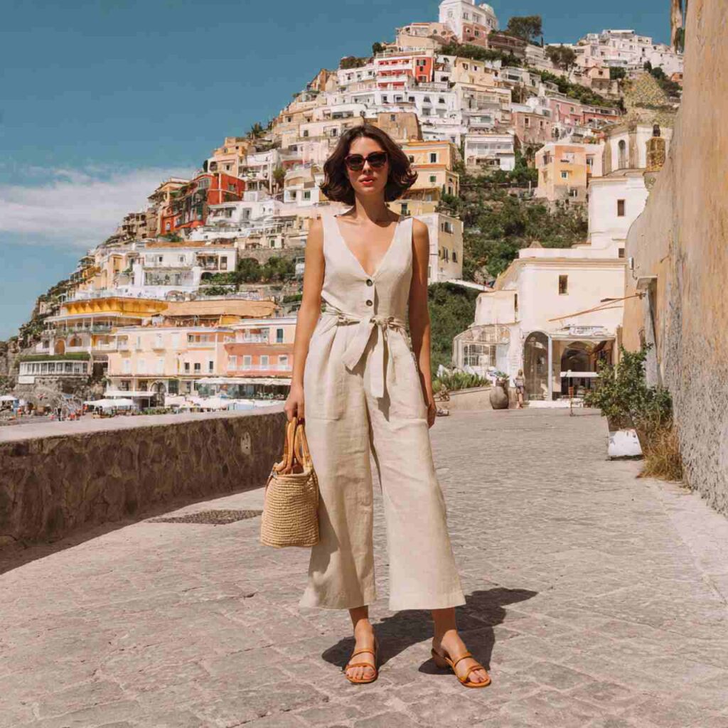 The linen jumpsuit represents vacation dressing at peak efficiencyโone piece that creates a complete, stylish outfit while being supremely comfortable. This is the outfit Europeans reach for when they want to look pulled-together with zero effort. The wide-leg silhouette keeps you cool while looking sophisticated.