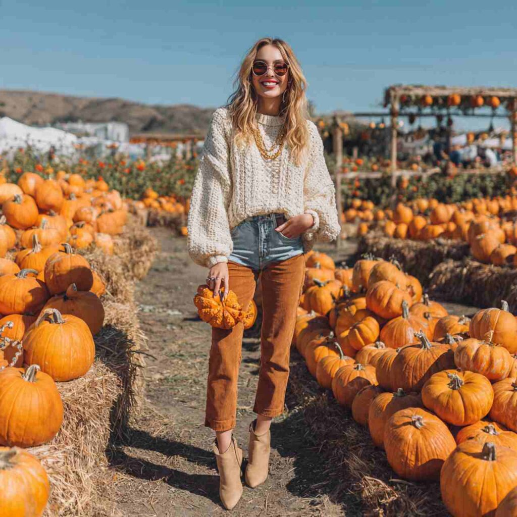 Choose a chunky or fitted sweater in fall colors. Pair with a slip skirt in satin or silk-like fabric the contrast between cozy knit and sleek fabric creates appealing tension. Add ankle boots or loafers. This works for dates, dinners, creative work environments, or occasions wanting cute sophistication that’s not too formal.