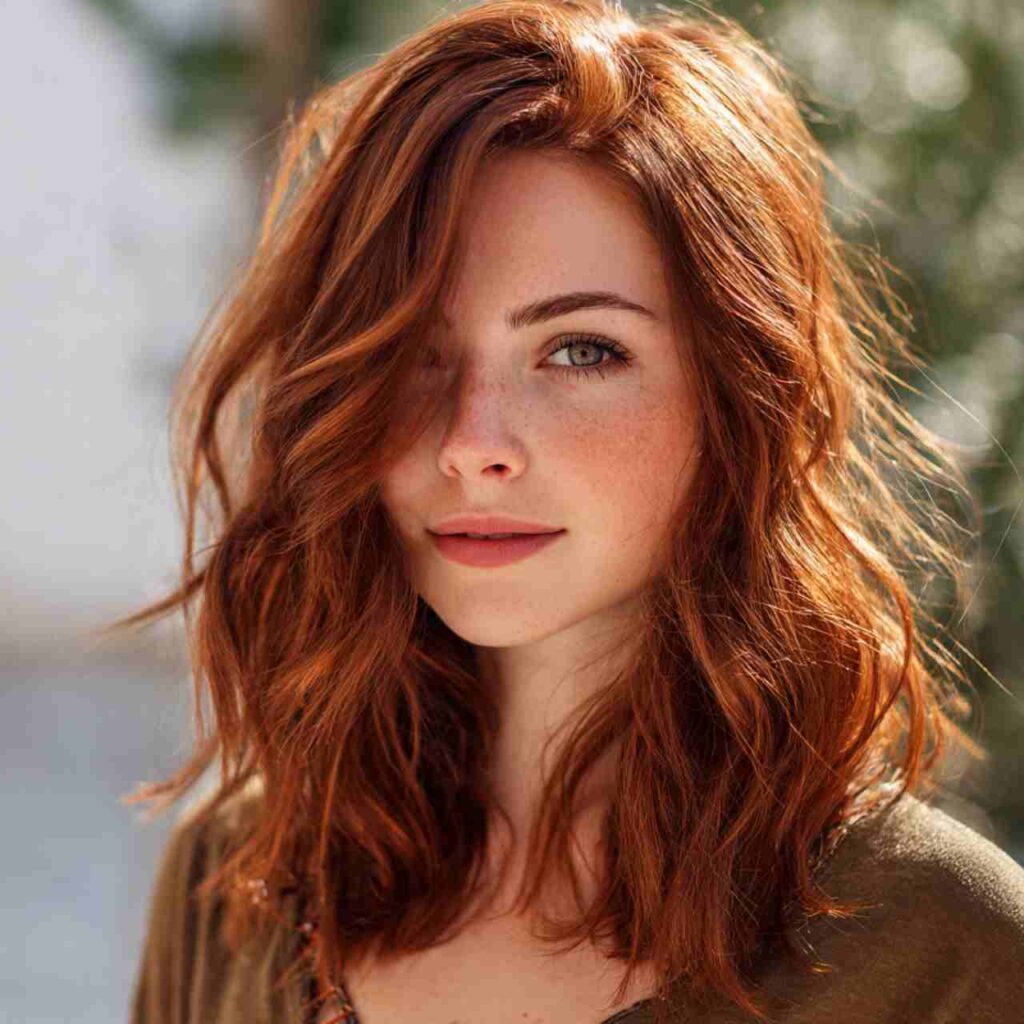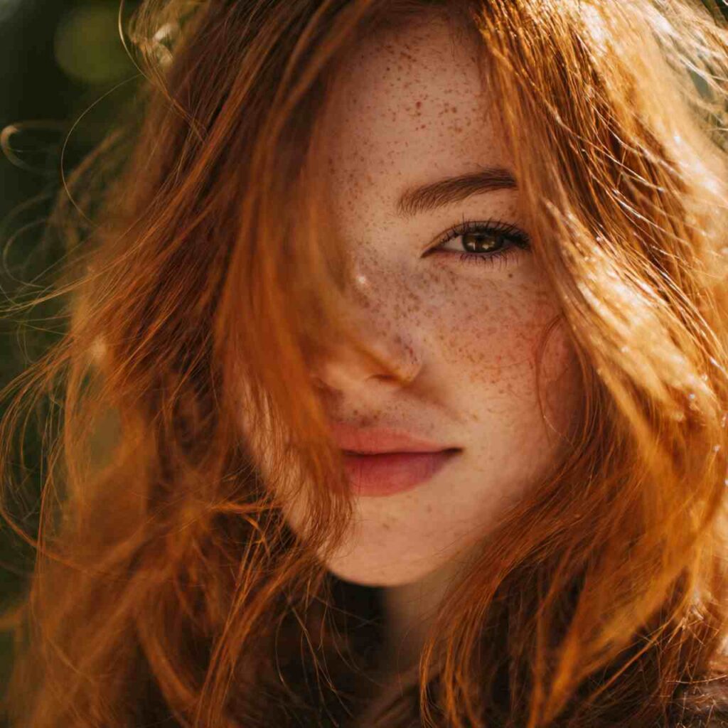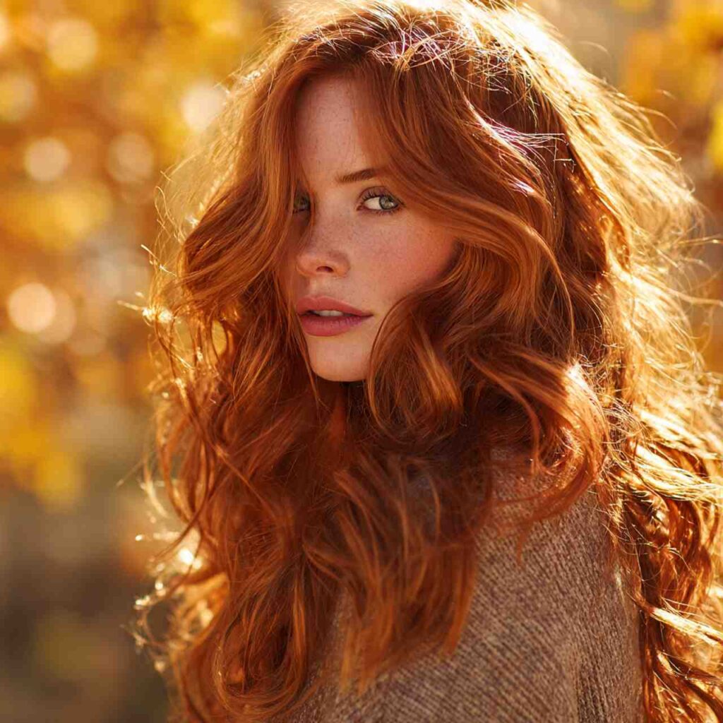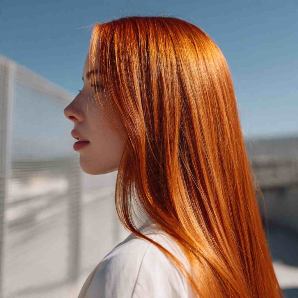 True ginger with orange undertones celebrates natural red hair beauty. This authentic shade embraces the warmth and vibrancy of classic redheads.