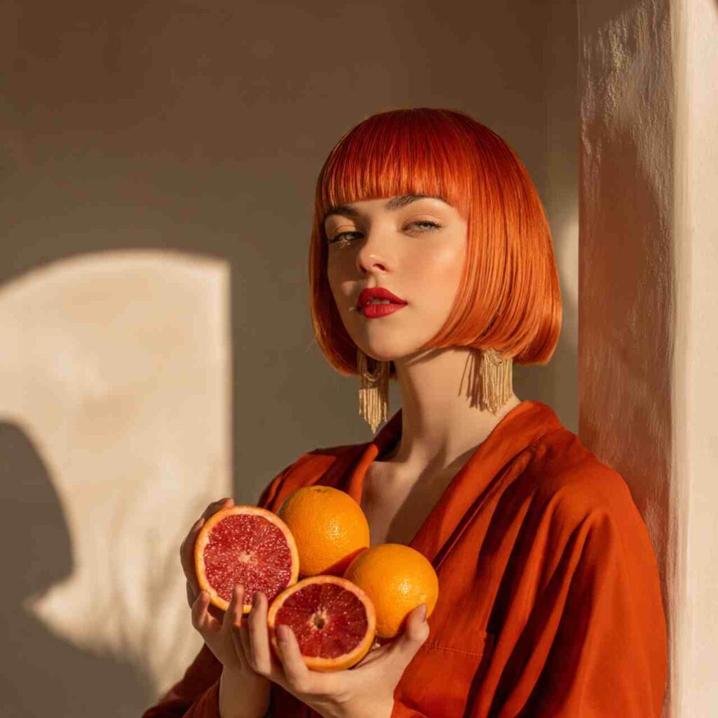 Deep orange-red resembling blood oranges creates unique warmth. This shade sits perfectly between orange and red for those who want both qualities.