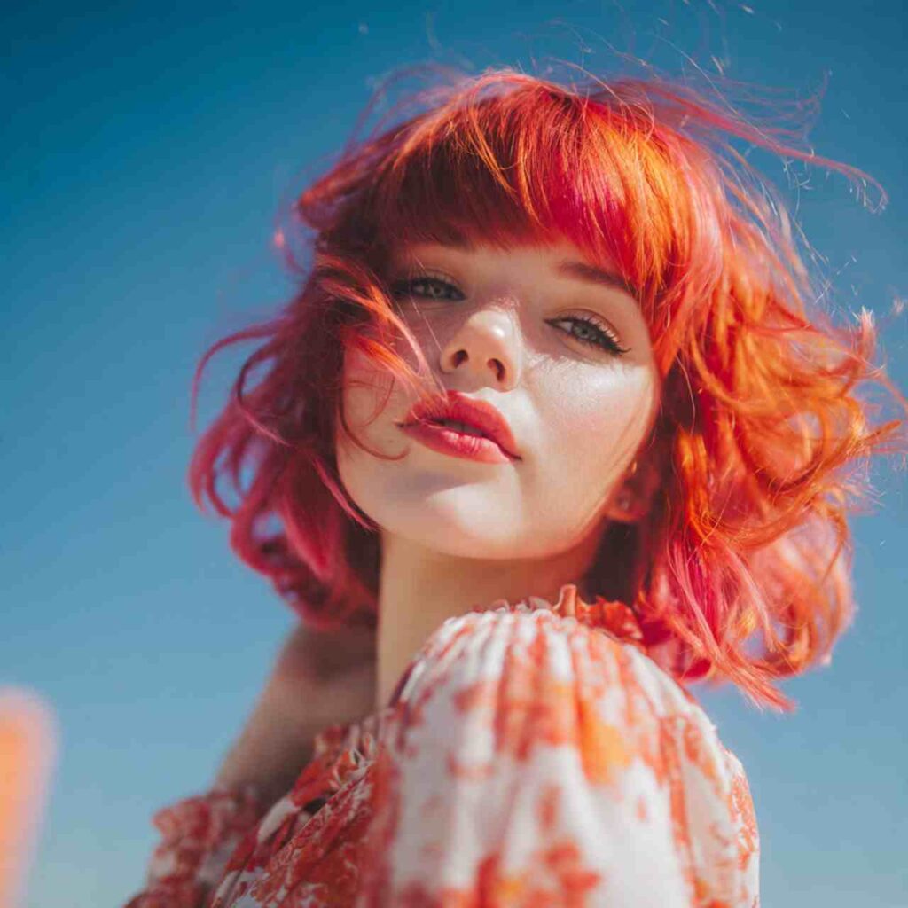 Bright strawberry red combining orange and pink undertones creates cheerful vibrancy. This shade radiates warmth and youthful energy.