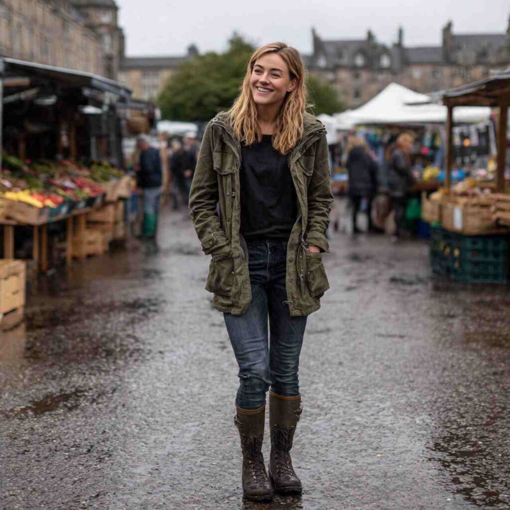A practical utility jacket in olive or khaki over simple black or white basics creates functional European style prioritizing wearability.