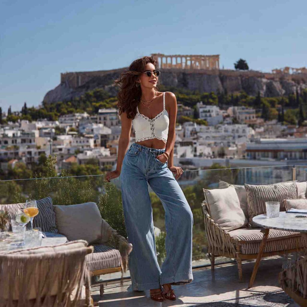 High-waisted wide-leg jeans paired with fitted crop or tucked top creates proportion balance favored across European style capitals.