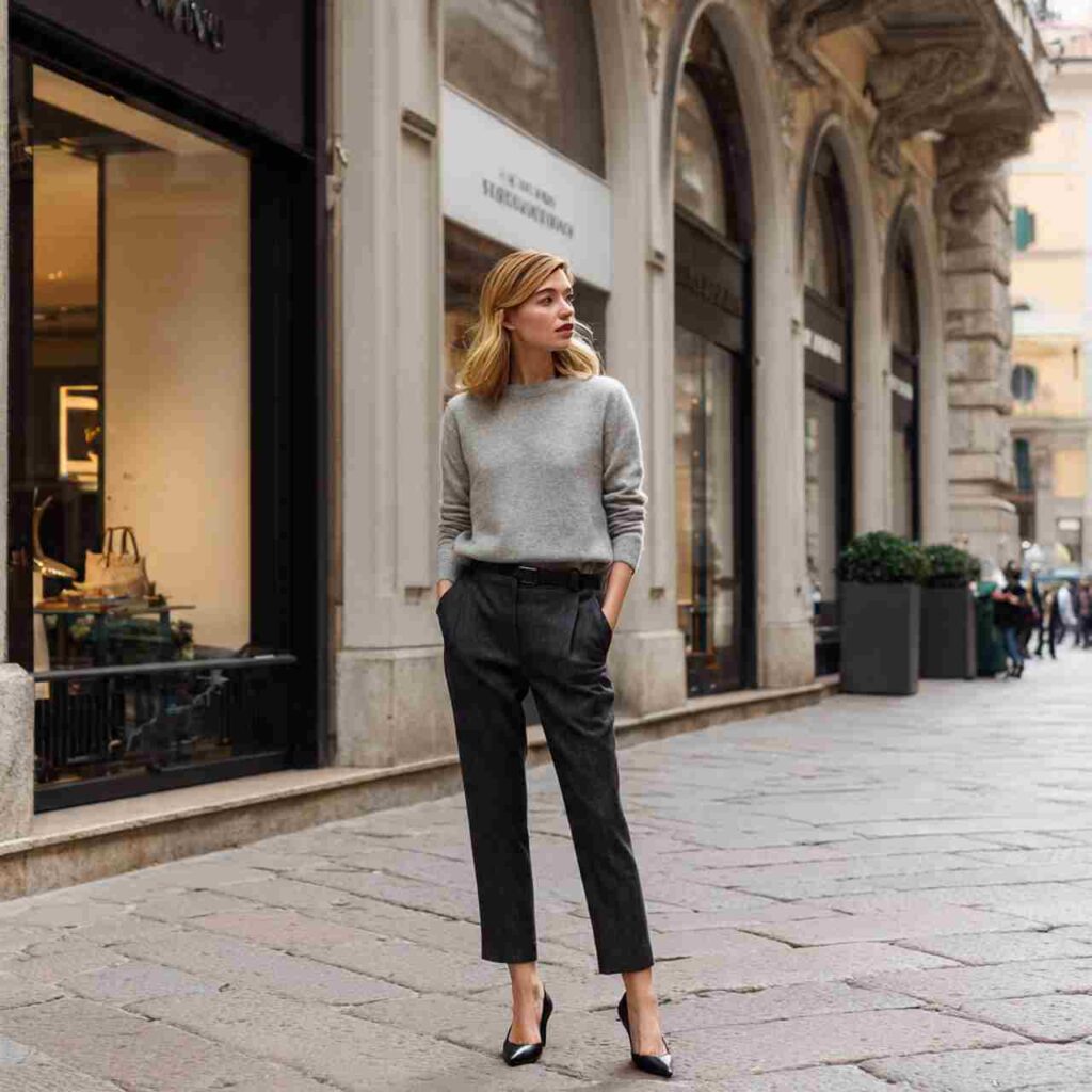Investment in quality cashmere paired with perfectly tailored trousers epitomizes European luxury fundamentals. The simple combination showcases quality over flash.