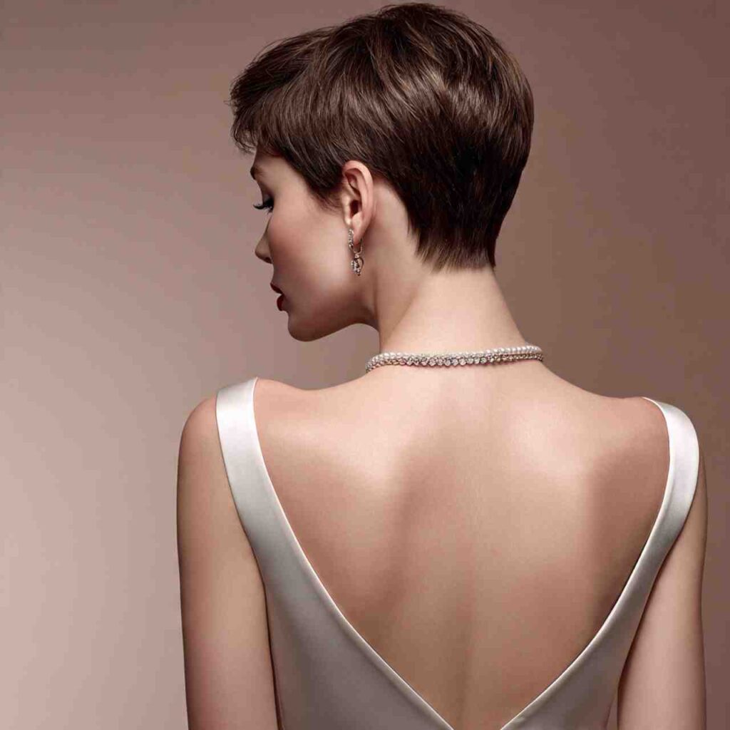 Soft graduation at nape creates elegant neck-revealing detail. This refined finishing adds sophistication while showcasing one of the pixie’s most flattering features.