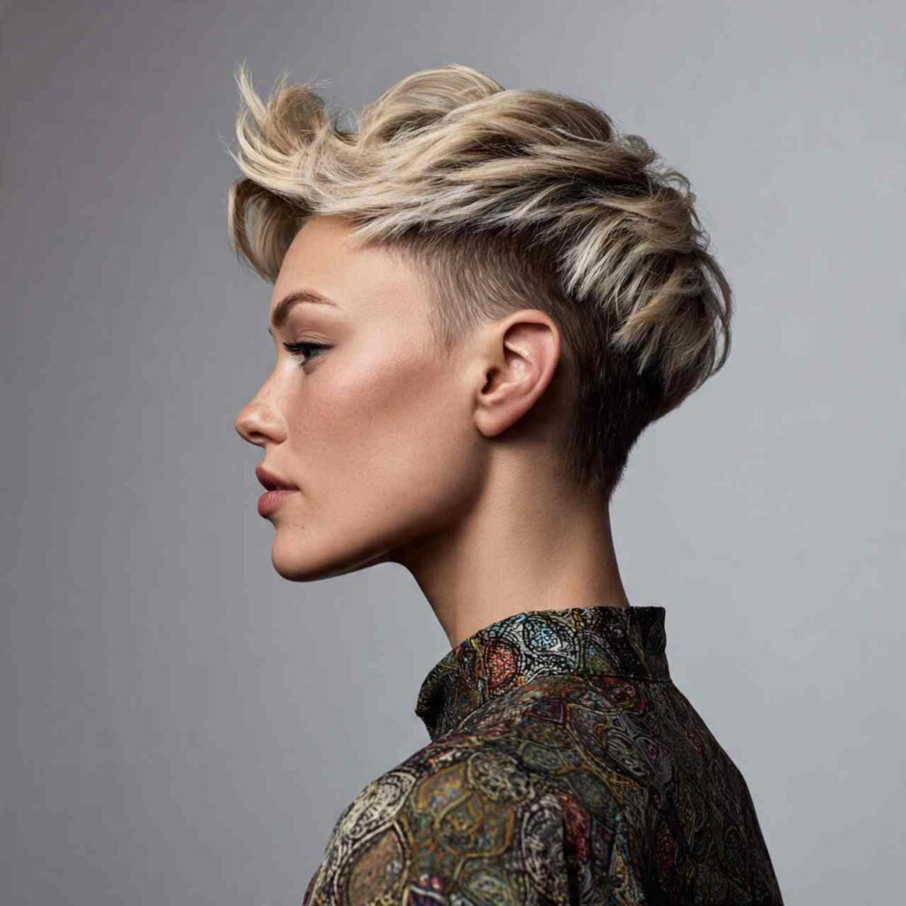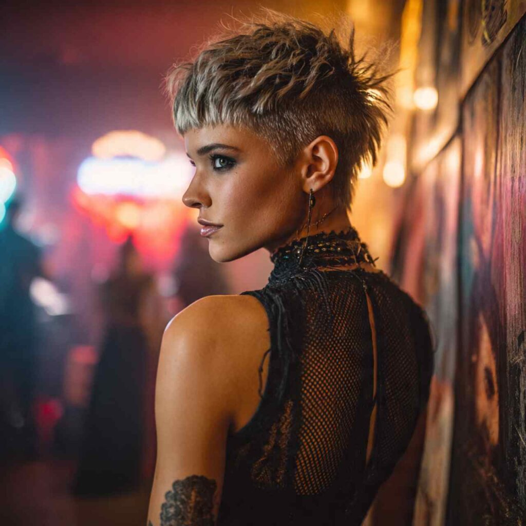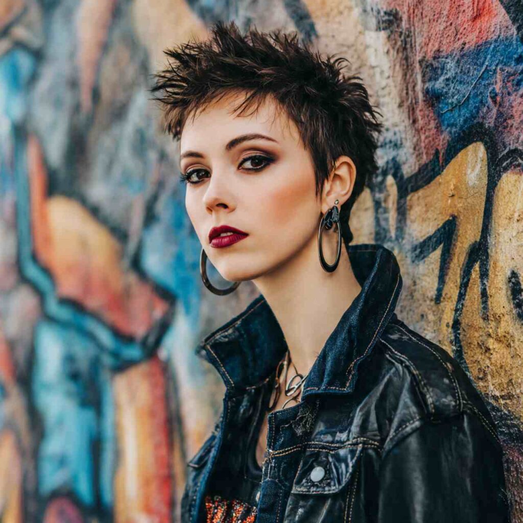 Short layers styled upward with product creates punk-inspired edge. This playful approach adds height and personality while remaining surprisingly versatile.