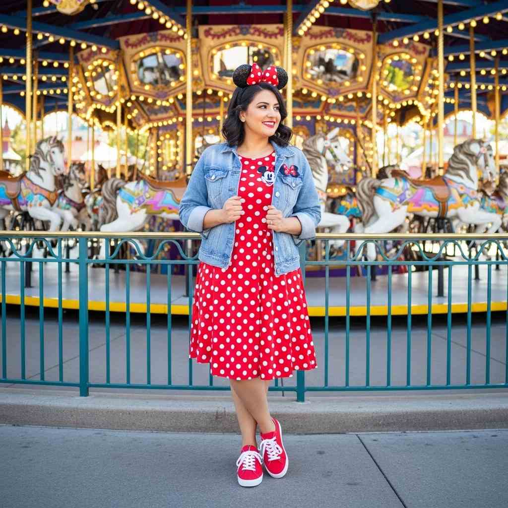 Why it works: This outfit is Instagram-ready for theme park visits or Disney-inspired outings while remaining cute enough for regular wear. The polka dots reference Minnie’s iconic style.