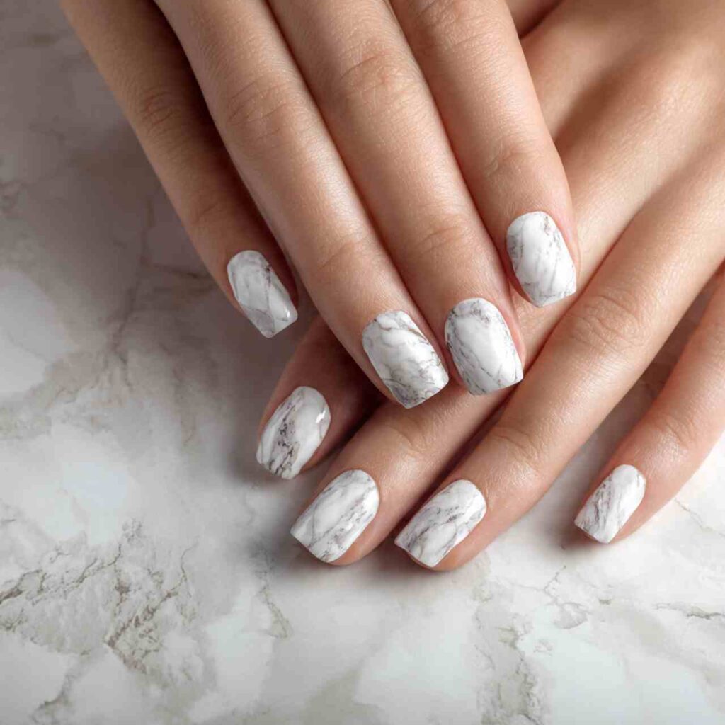 White and gray marble pattern creates sophisticated natural aesthetic. The stone-inspired design feels expensive and timeless.