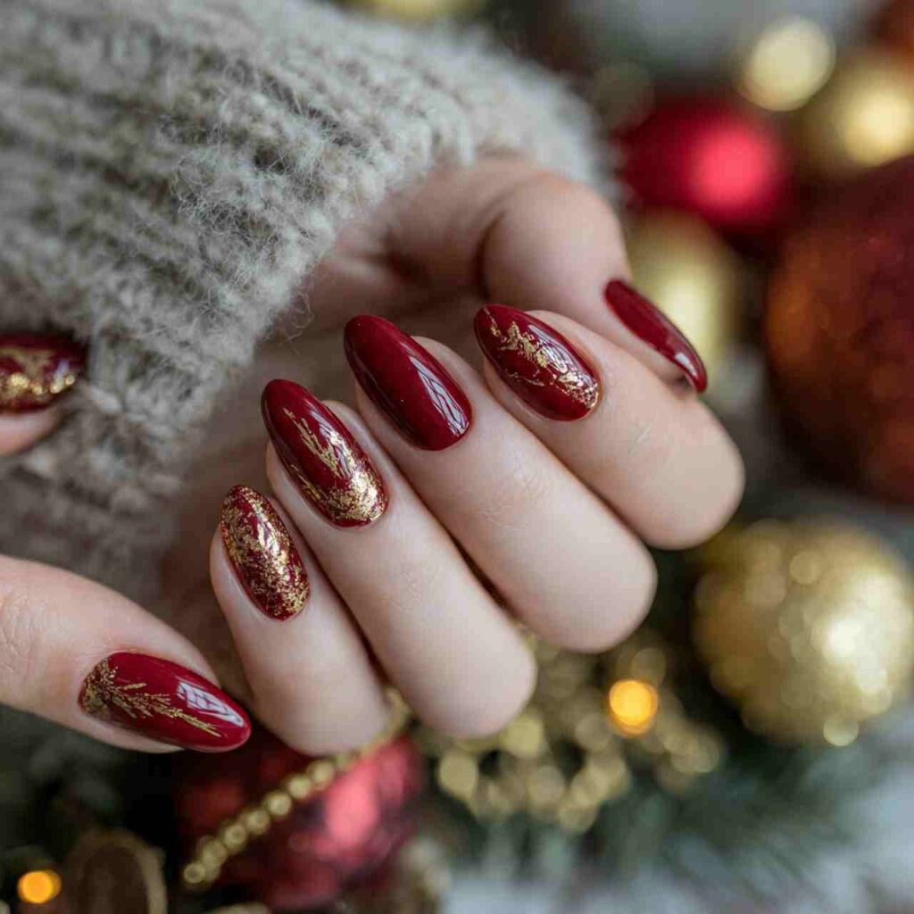 Classic holiday combination of deep red with gold accent details creates seasonal glamour. The traditional pairing never goes out of style for winter celebrations.