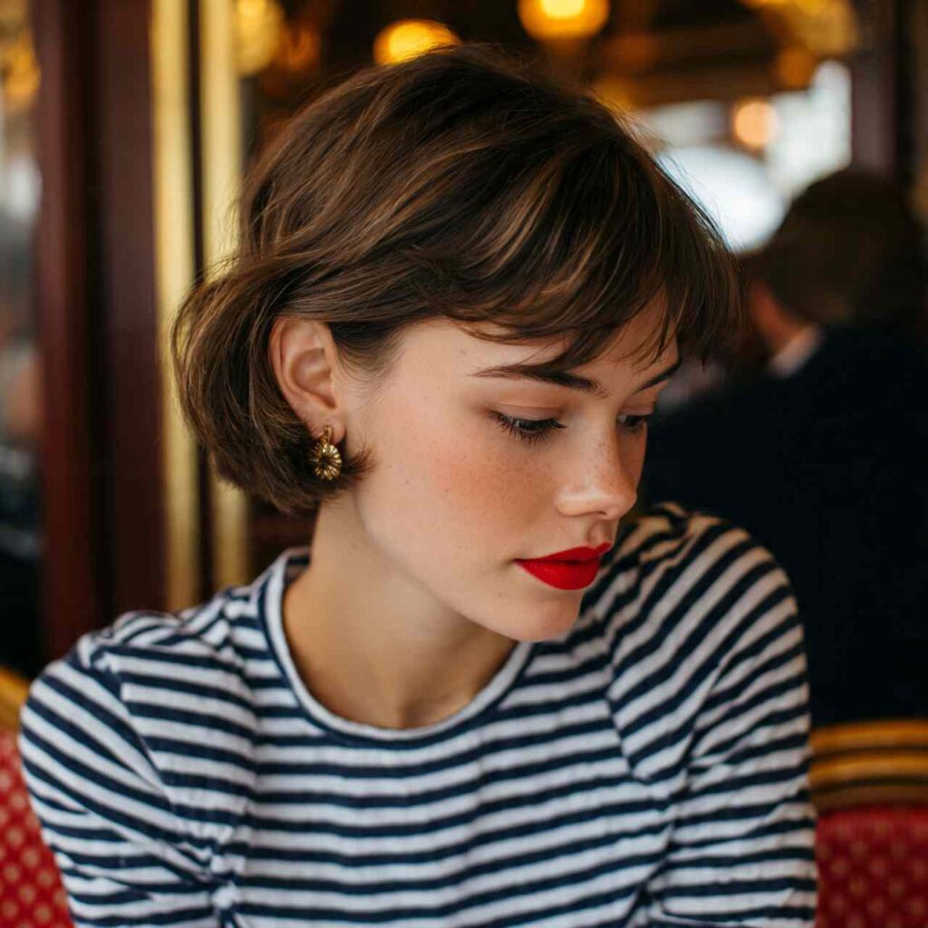 Shorter vintage-inspired bob ending above jawline creates Parisian chic. This retro length feels fresh and sophisticated with contemporary styling.