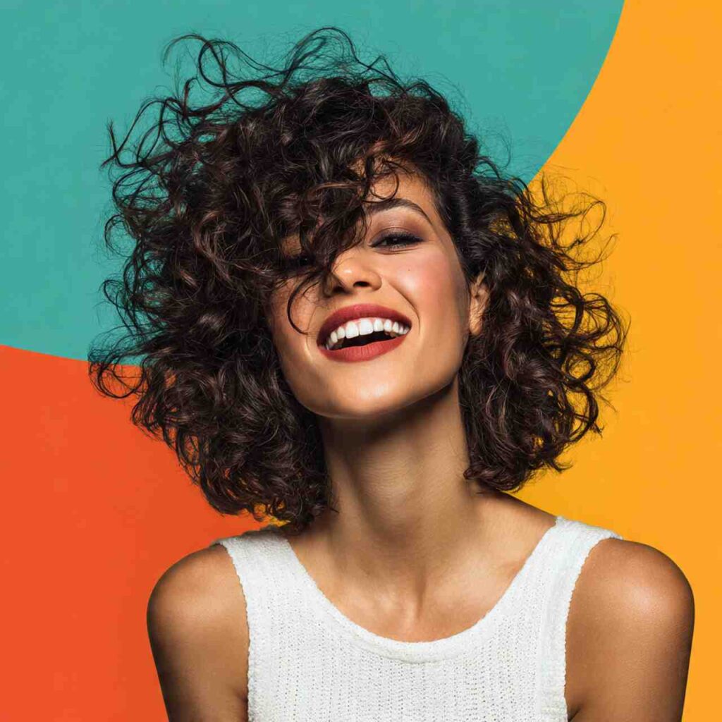 Natural curls shaped into bob length creates dimension and personality. This celebrates textured hair with proper cutting technique that enhances curl pattern.