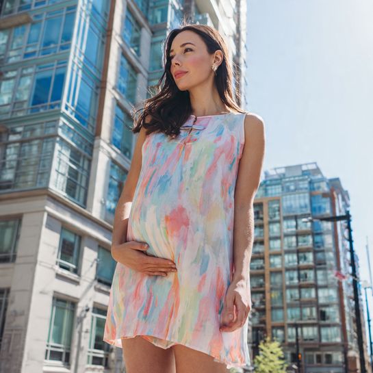 Smocking stretches naturally, making this dress ideal for all pregnancy stages.