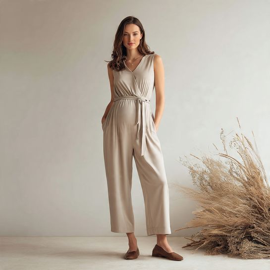 A jumpsuit with a tie waist adapts as your body changes while keeping a sleek silhouette.