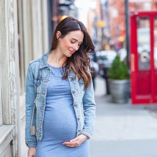 9. Soft Denim Maternity Jacket with Jersey Dress