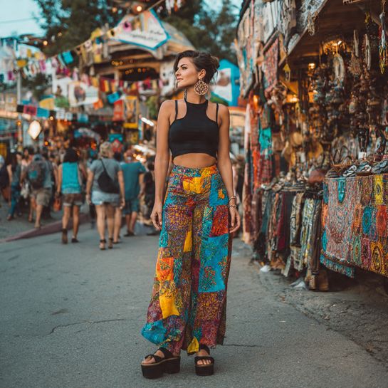 A fitted crop top with wide palazzo pants balances skin-showing with coverageโideal for warm city exploration.