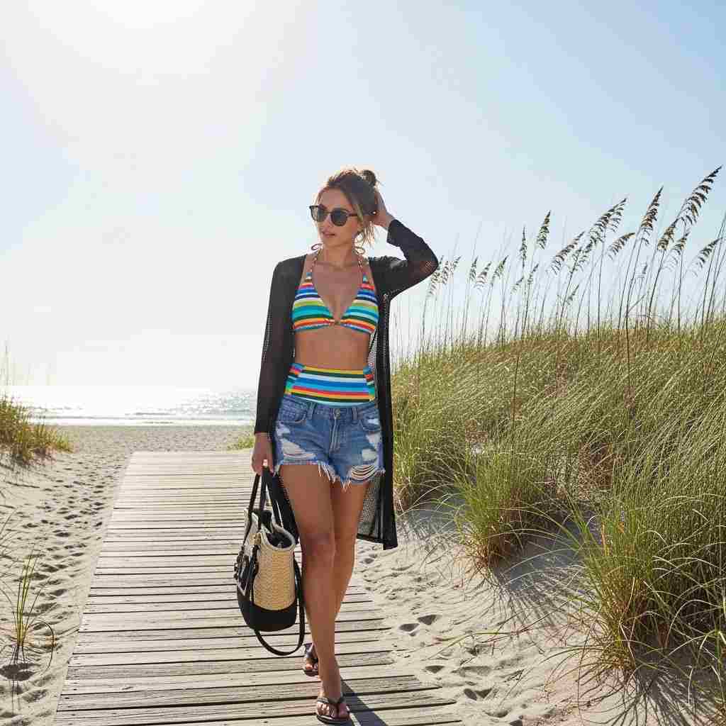 Certain beach pieces pull double duty beautifully. Cover-ups work as dresses for casual dining. Sarongs become scarves, beach blankets, or even makeshift bags. A good pair of denim shorts goes from beach to bar seamlessly.