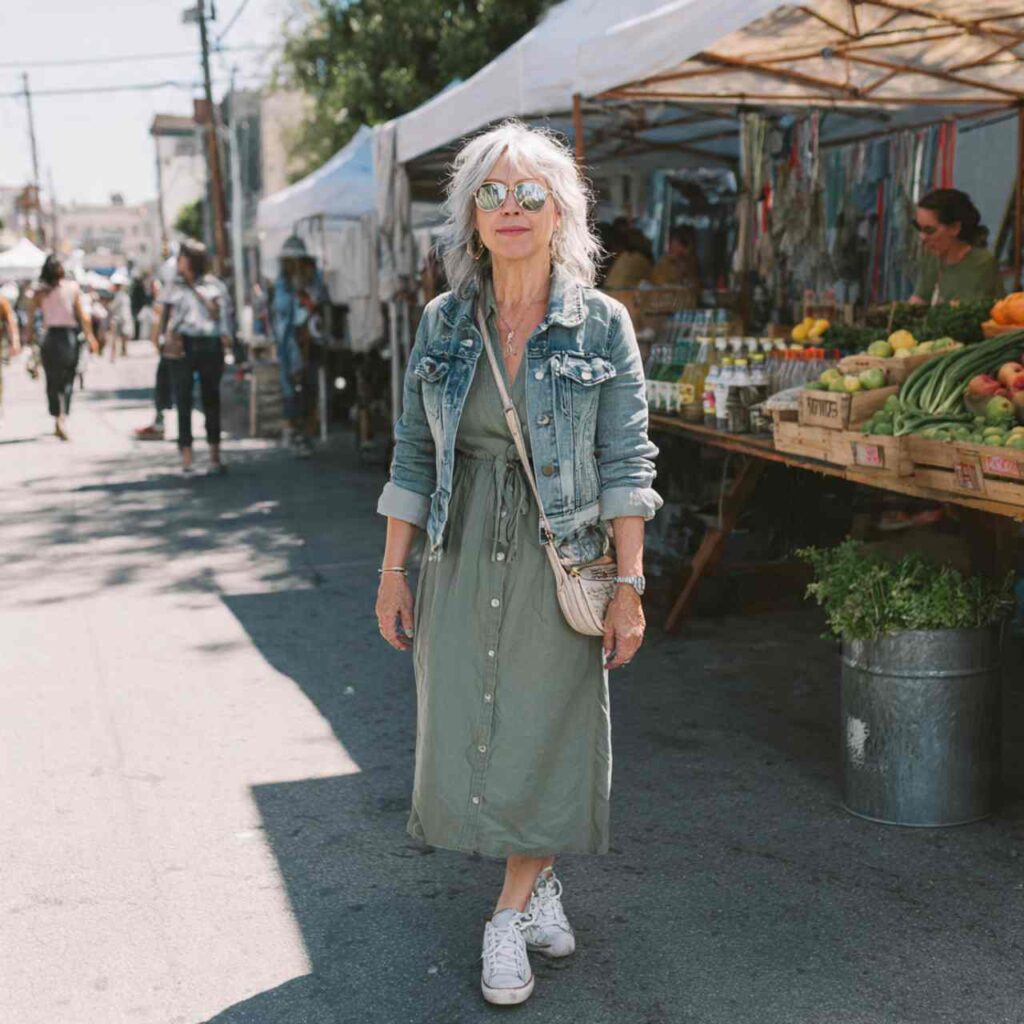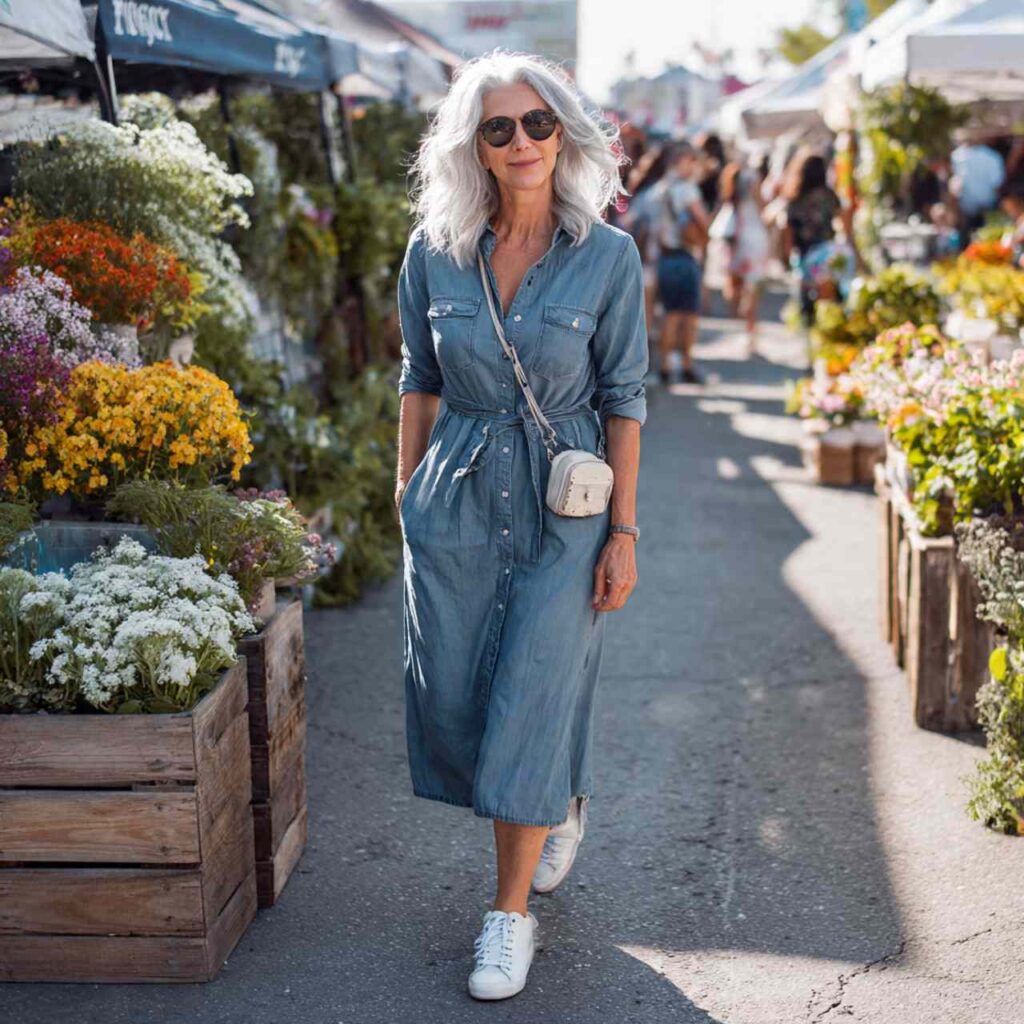 Select a chambray shirt dress or A-line dress in soft denim fabric. The midi length provides coverage while remaining cool. The dress should have some shapeโ€”perhaps a defined waist or beltโ€”to avoid looking shapeless. Add white sneakers for casual daytime or wedge sandals for slightly elevated occasions. Layer a denim jacket for air-conditioned spaces. This dress simplifies summer dressing while looking intentionally styled. The chambray fabric feels substantial without being heavy, and the blue tone flatters most complexions beautifully.