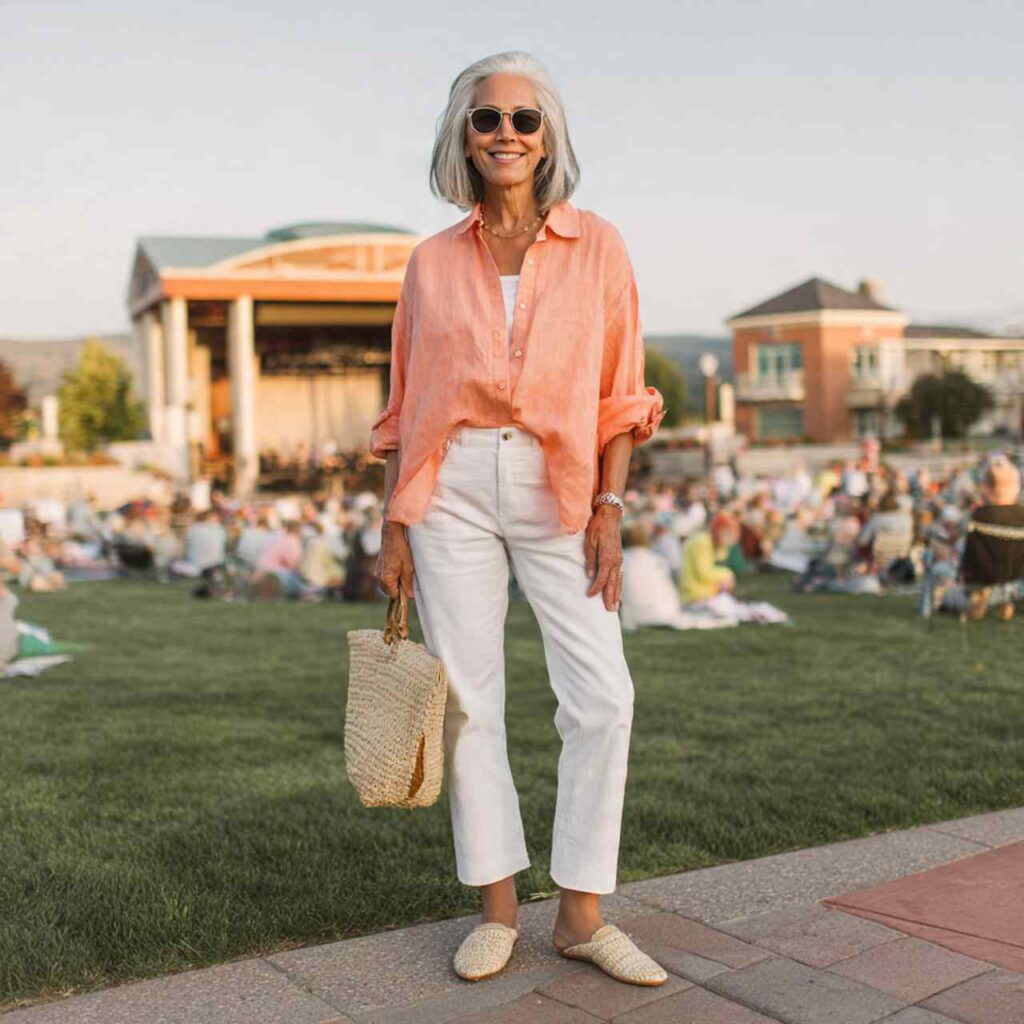 Your fifties and beyond bring a beautiful clarity about personal style you know what works for your body, understand your lifestyle needs, and appreciate quality over fleeting trends. Summer dressing in this decade should celebrate that wisdom while embracing the season’s ease and joy. These aren’t outfits trying to look younger or following rules about what’s “age-appropriate”โ€”they’re sophisticated, comfortable, and genuinely chic combinations for women who’ve earned their style confidence.