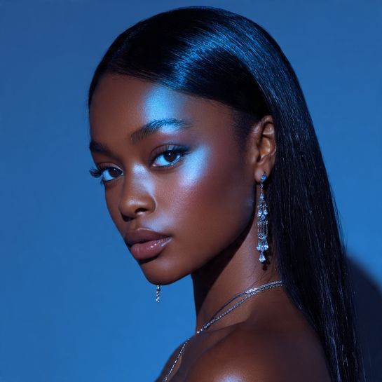 Pure black with blue undertones adds depth and shine, creating a sleek, modern look that makes dark skin glow.