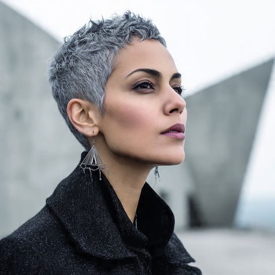 Deep gray with silver undertones offers an edgy, contemporary look that creates stunning contrast against dark skin.