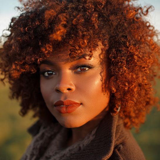 Vibrant ginger-red creates bold warmth and unforgettable impact on dark complexions.