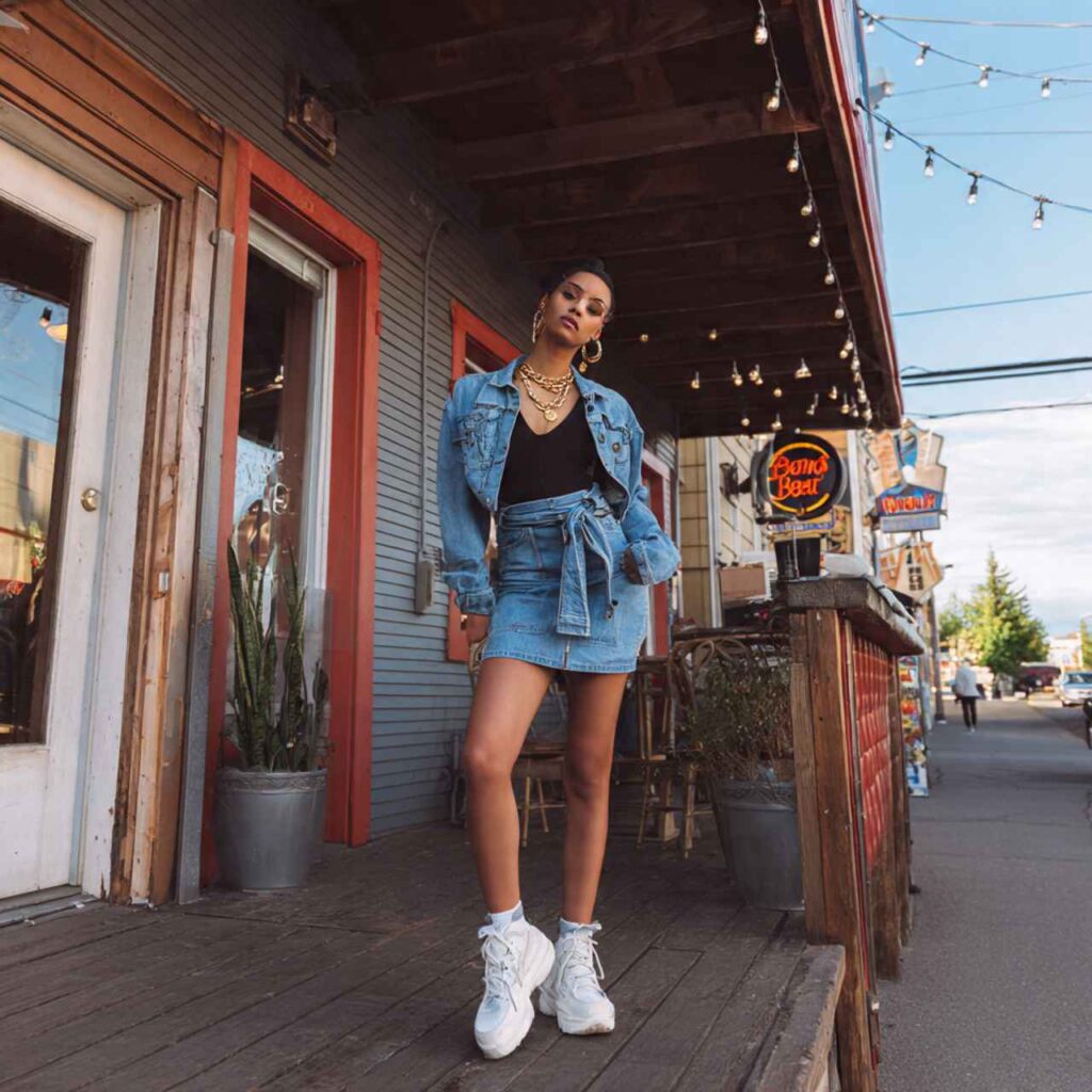 A denim mini skirt paired with a fitted bodysuit or crop top creates an easy, youthful look. Add sneakers for casual bars or heels to dress it up. This combination is endlessly versatile.