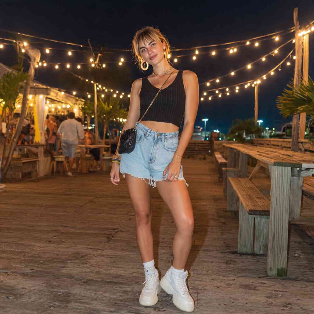 The Vibe: Perfect for casual bars, beach clubs, or outdoor venues. This outfit says you’re here to have fun, not to impressโwhich is actually the most impressive attitude.