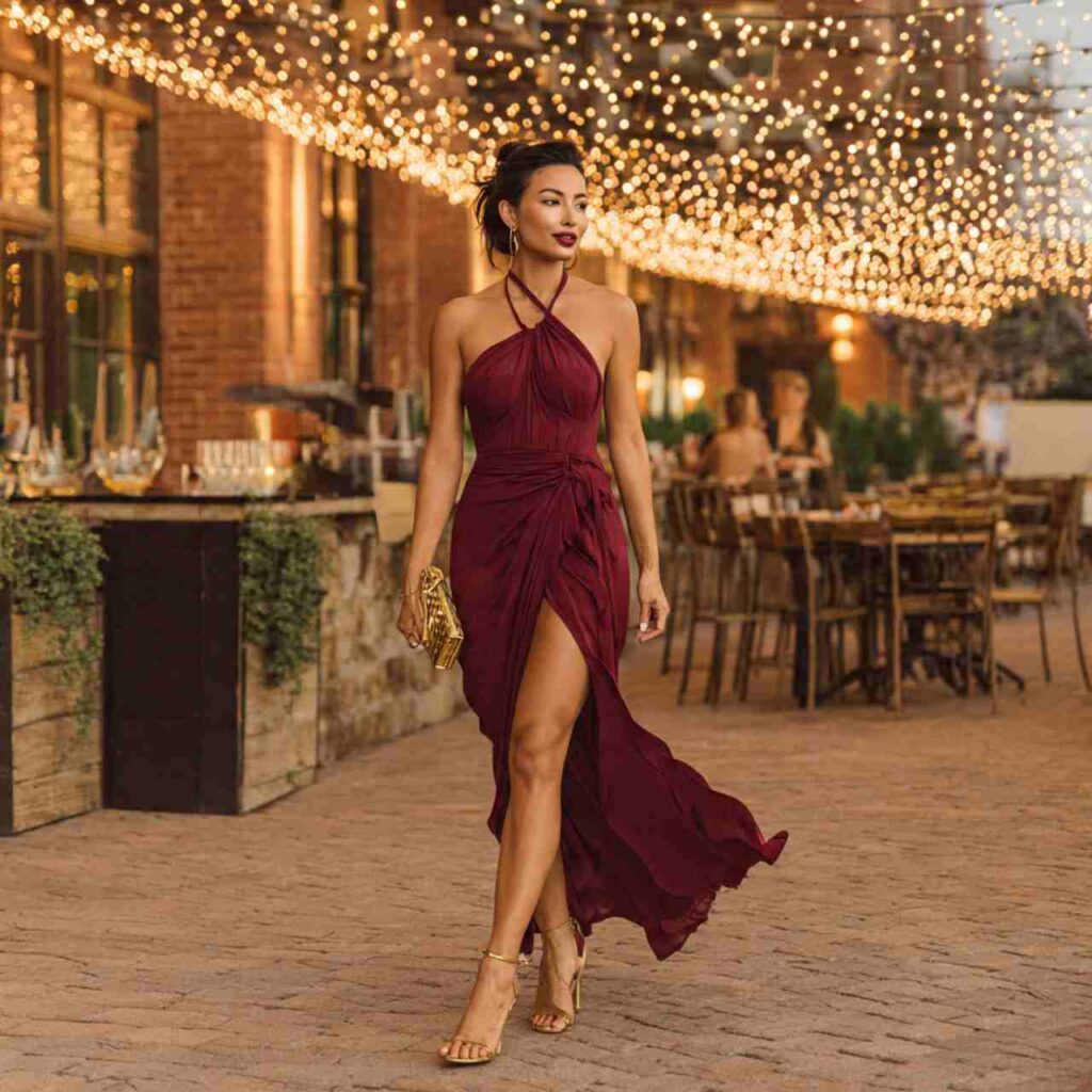 The Vibe: Glamorous and dramatic. This outfit works for upscale venues, beachside bars, or any setting where you want to feel like a movie star.