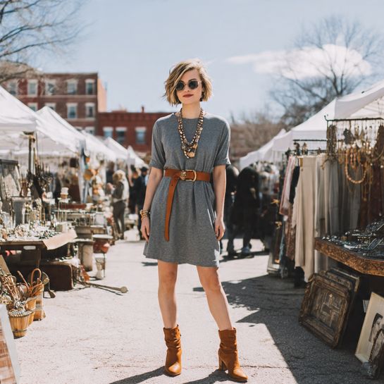 Why it works: The belt transforms a basic dress by defining the waist while boots add polish. This outfit requires minimal pieces but maximum impact.