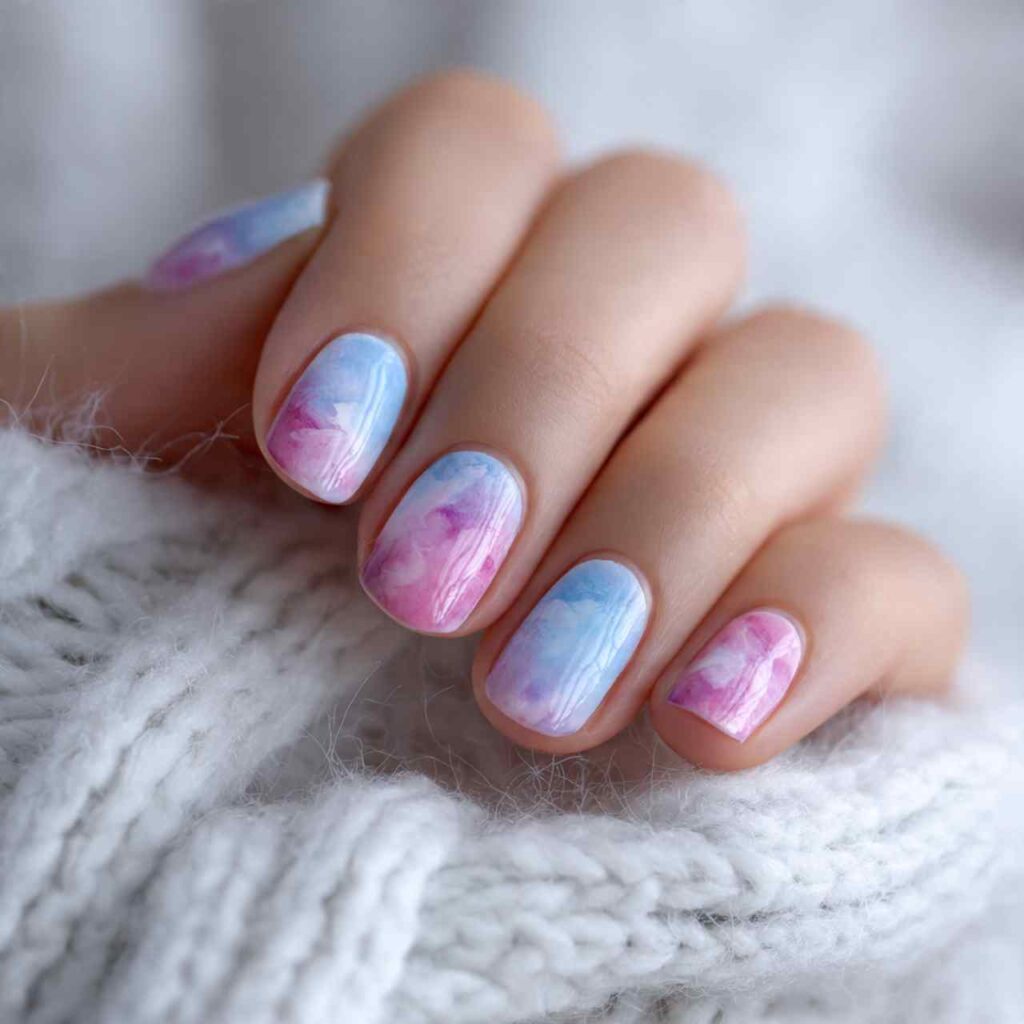 A gentle fade from a soft color like lavender or mint to white at the tips creates an ethereal, cloud-like effect.