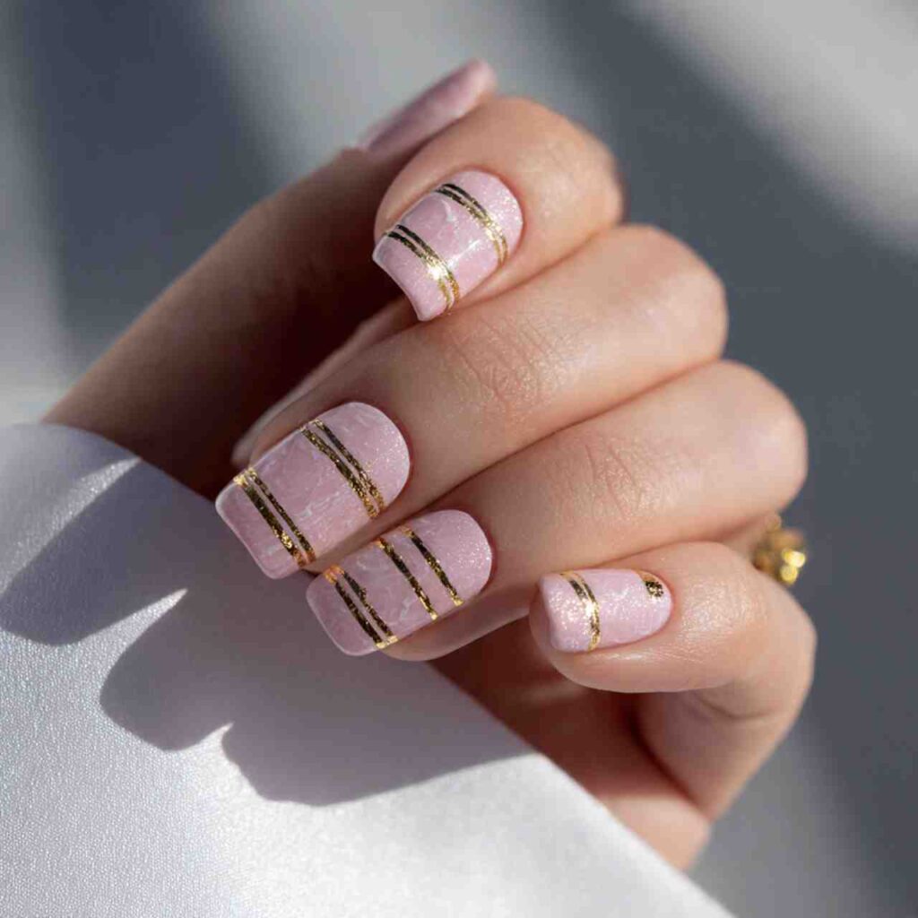 Why it works: The metallic catches light beautifully, and the thin application keeps it from overwhelming short nails.