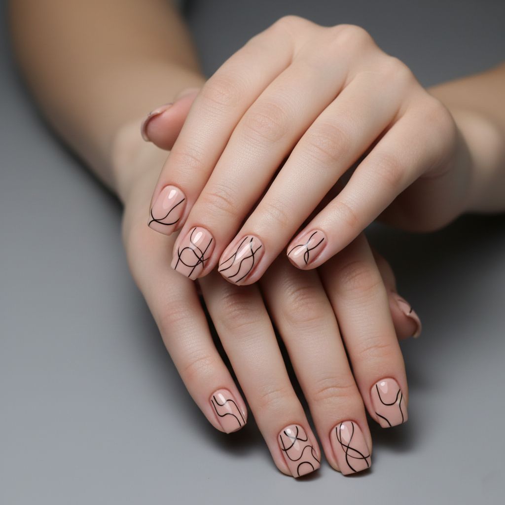 Single curved lines dance across each nail in this understated yet artistic design. Using black or metallic lines on a neutral base, each nail features a unique, hand-drawn stroke that feels organic and modern.