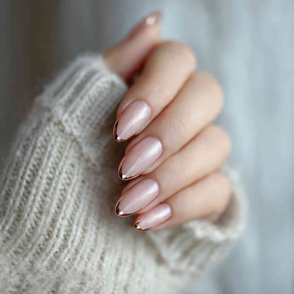 The classic French manicure gets a 2026 update with ultra-thin metallic tips. Instead of white, try champagne gold, rose gold, or platinum silver for tips that measure just 1-2mm.