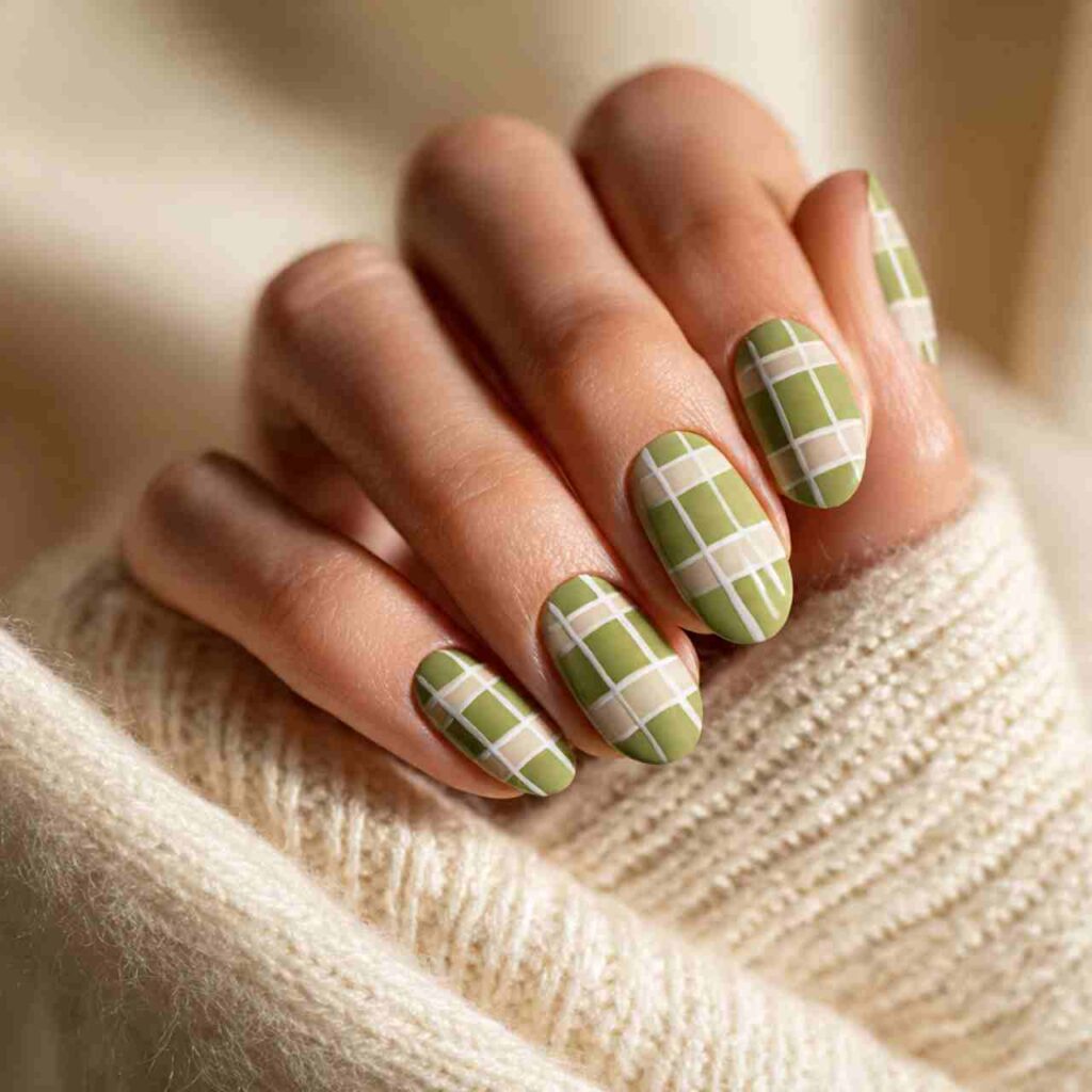 This playful design alternates between polish and bare nail to create a checkerboard effect. Use soft colors like sage green or dusty blue for a modern take on this geometric pattern.