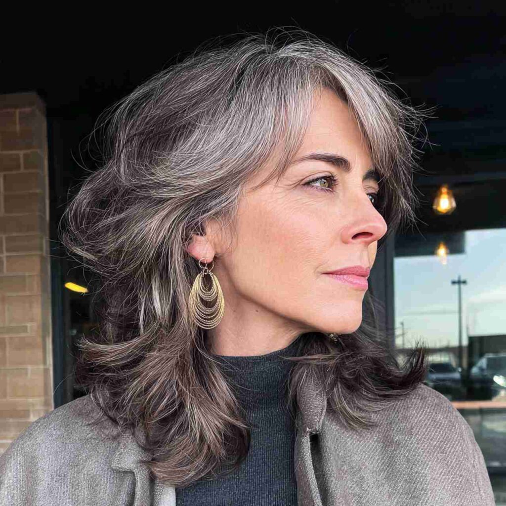 Cool pewter gray with metallic tones creates modern silver sophistication. This intentional gray shade makes transitioning look chic rather than accidental.