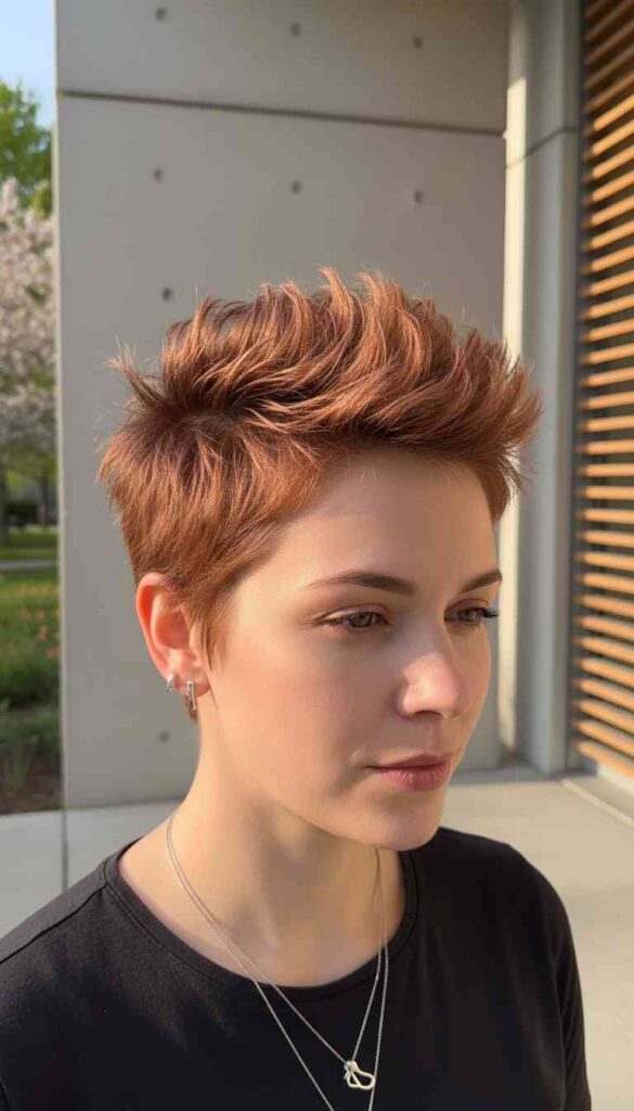 Ultra-short pixie with deliberately textured crown creating weightless dimensional form.
