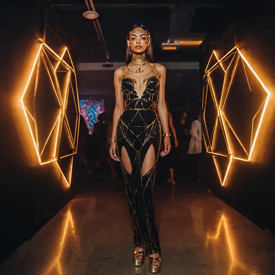 Wearable LED technology transforms you into a moving light installation. A coordinated set with programmable lights creates unforgettable visual impact on the dance floor.