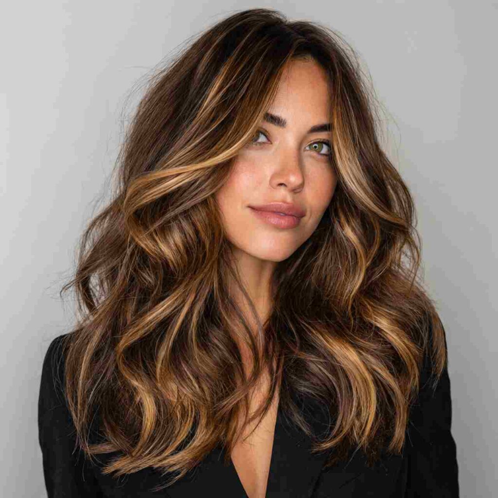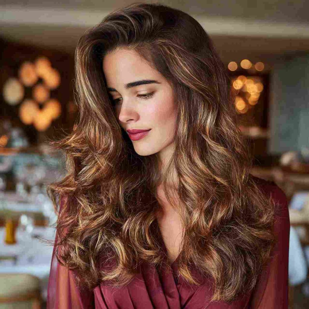 Rich chestnut base with thin caramel ribbons throughout creates subtle warmth. This sophisticated technique adds dimension without overwhelming.